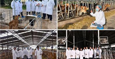 10月15日,中國農(nóng)業(yè)大學牛遺傳育種專家王雅春教授、路海通博士,中國農(nóng)科院國家奶牛產(chǎn)業(yè)科學家趙善江副研究員、農(nóng)業(yè)部環(huán)保所嚴偉博士一行四人到大理州企業(yè)家協(xié)會理事單位——云南歐亞乳業(yè)公司鶴慶萬頭牧場考察指導工作,大理州畜牧專家李會民研究員、鶴慶縣畜牧站站長趙六一、公司副總經(jīng)理楊永莉、牧場總經(jīng)理楊金喜陪同考察。王雅春教授一行深入了解了娟姍牛養(yǎng)殖、飼喂、繁育、管理等工作的開展情況,對公司切實推進創(chuàng)新育種、智慧管理及配套建設(shè)中央廚房項目等做法表示贊揚,就提高奶牛單產(chǎn)量、免疫力等提出系列指導建議。10月16日,專家一